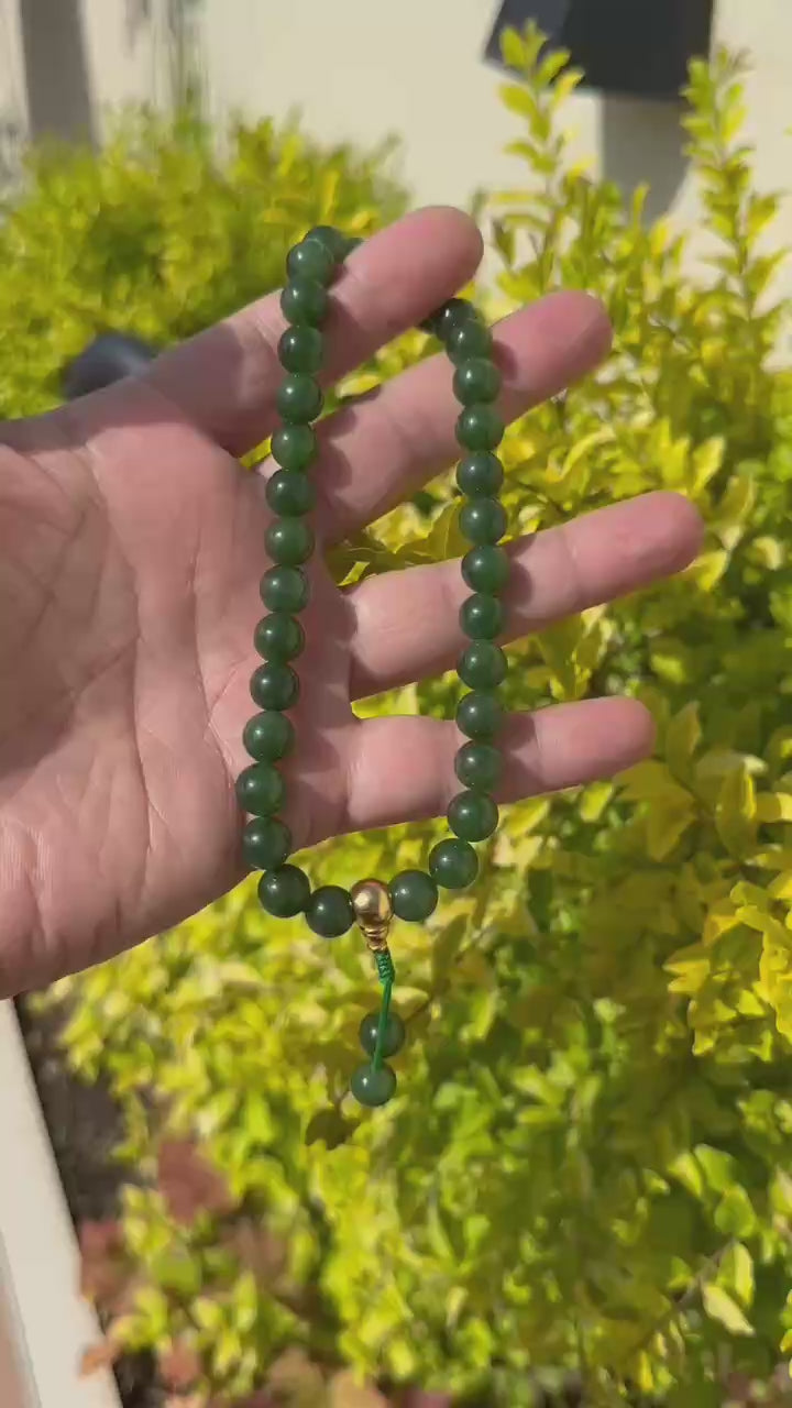 Green Harmony Hetian Jade Tasbih – Classic Jade with Golden Grace